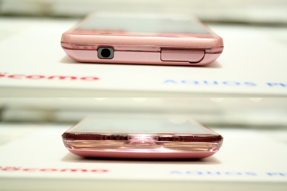 本体の正面に向かって左側面には端子類、ボタン類の搭載はなく、右側面には電源ボタンとボリュームキー(上下キー)とストラップホールを備え、本体上部側面には3.5mmイヤホンジャックおよびmicroUSB端子を搭載する。下部は先に紹介したようにクリアフレームとなっておりイルミネーション用のLEDを搭載。