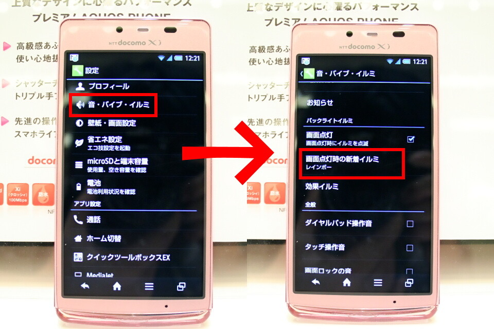 ・本日事前予約開始!NTTドコモ、カラフルなイルミネーションや1310万画素カメラなどを搭載したスマホ「AQUOS PHONE EX SH-04E」を1月25日に発売 - S-MAX - ライブドアブログ