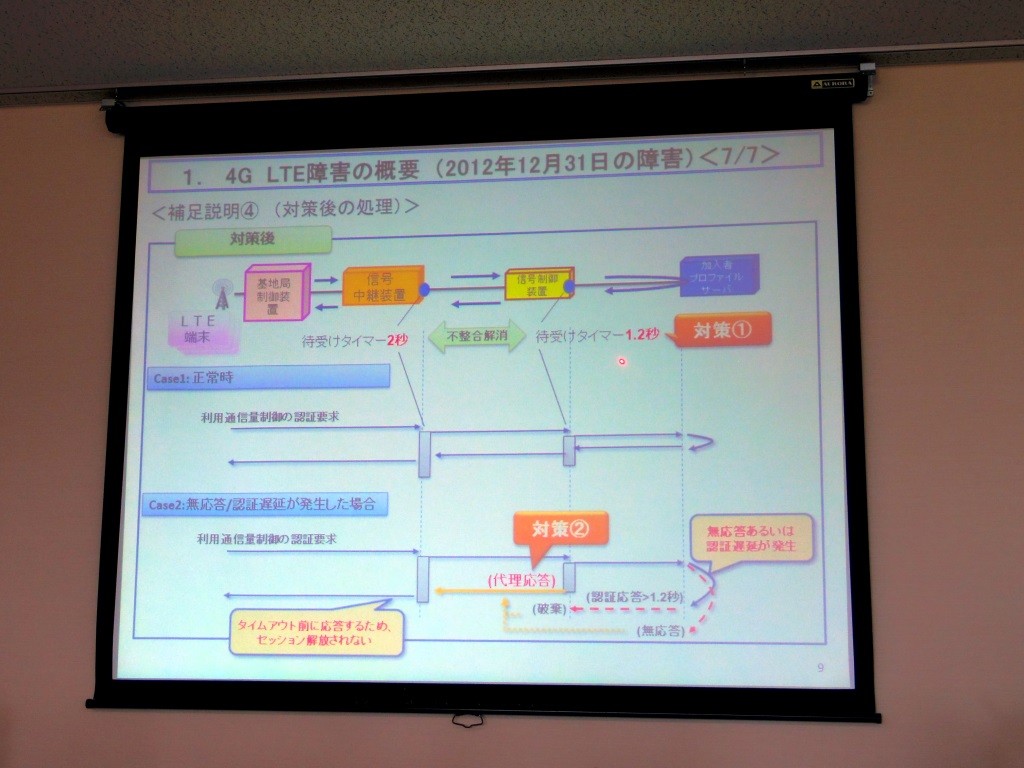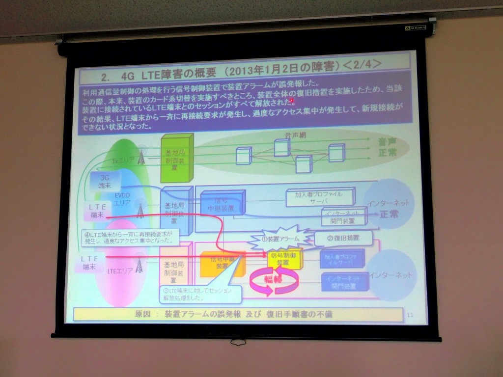 昨年12月31日と、今年1月2日に発生したLTE通信サービス「4G LTE」の障害についてはKDDI 技術統括本部 運用本部長の内田義昭氏が説明を行いました。