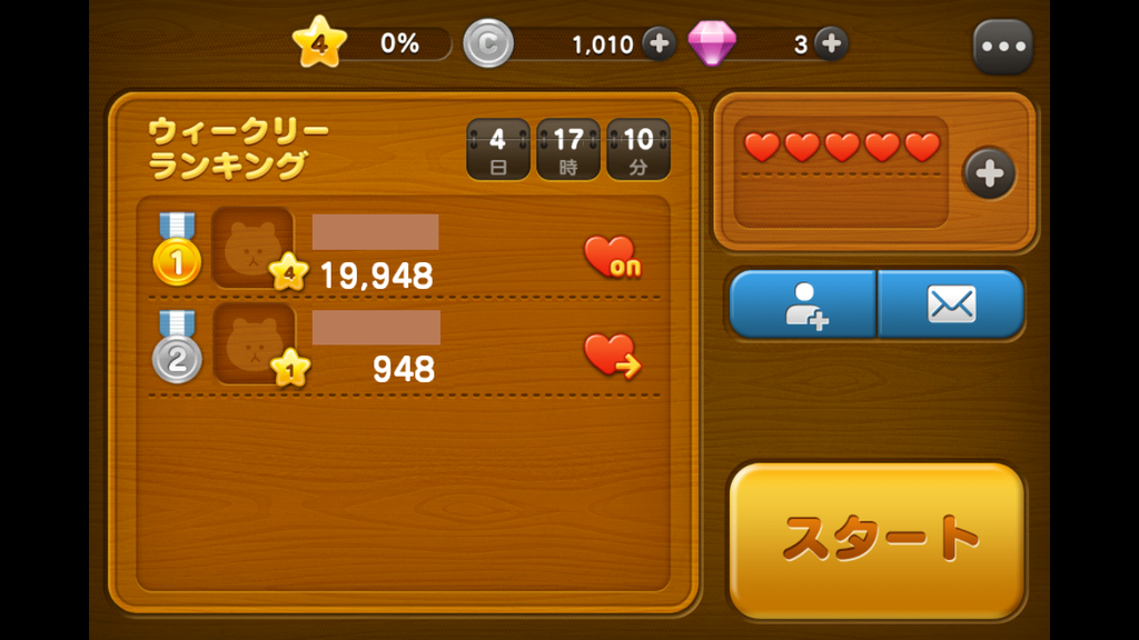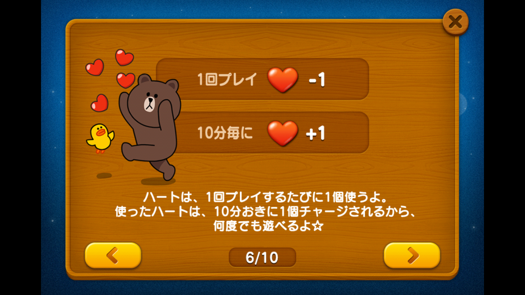 ハート1個で1回遊べます。減ったハートは時間が経過すると増える♪