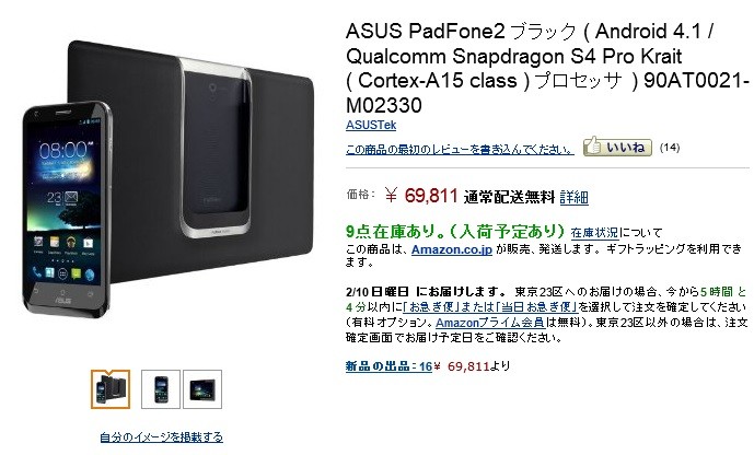 日本ではPadFone 2はPadFone 2 Stationとセットで販売されていて、価格はメーカー予想価格が7万9800円で、実売7万円前後です。