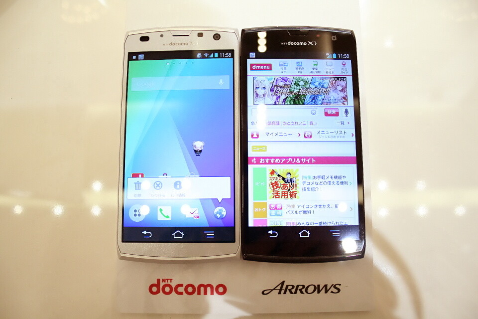 NTTドコモの「2013年春モデル」のうちで、本日16日(土)から事前予約を開始した1.7GHzクアッドコアCPUを内蔵したチップセット「Tegra3」搭載のウルトラハイスペックスマートフォン「ARROWS X F-02E」(富士通製)。