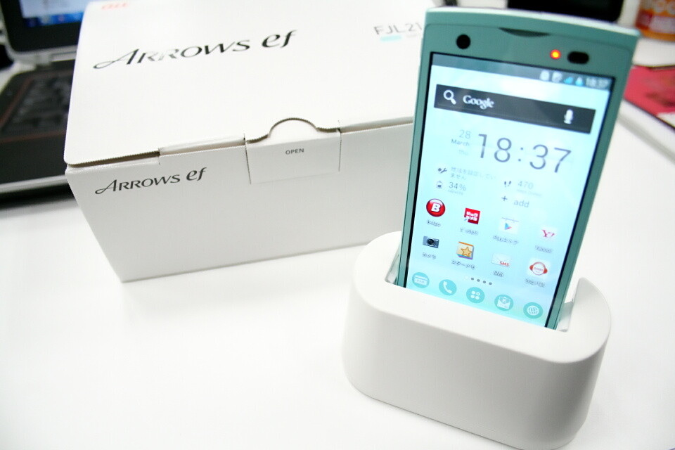 auの2012年冬モデルとして現在発売されているサムスン電子製の「GALAXY SIII Progre SCL21」、富士通製の「ARROWS ef FJL21」、パンテック製の「VEGA PTL21」の3機種が、MNP(他社からの乗り換え)で、本体代金一括0円で販売されていることを以前紹介したが、筆者も気になっていた(というよりも本体カラーに一目惚れしちゃった)「ARROWS ef FJL21」(以下、FJL21)をMNPで購入したので開封レポートをお届けする。