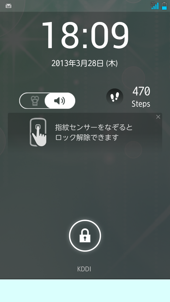 さらに、ロック解除画面で指紋センサーを指でなぞるとロックの解除ができる。指紋を登録しなくても、デフォルト状態でこの一連の操作ができるようになっている。