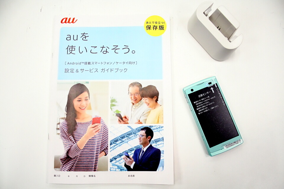 そして、今回の購入店では「auを使いこなそう。[Android搭載スマートフォン/ケータイ向け] 設定&サービス ガイドブック」を渡された。初期設定、緊急時対策、親子のあんしん、アプリ&サービス、海外、auのおトクの各項目別に説明や紹介がされている。