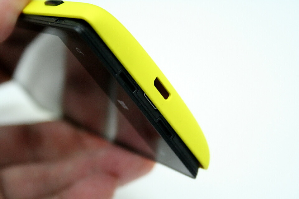 Lumiaシリーズで特長的な鮮やかでカラフルな色を揃えた背面カバーだが、Lumia 520にも採用されており、本体下部のmicroUSB端子付近の“ツメ”を外すことで、簡単に着脱ができる。専用ケースのような背面カバーとなっており、外すと本体が一回り小さく感じる。