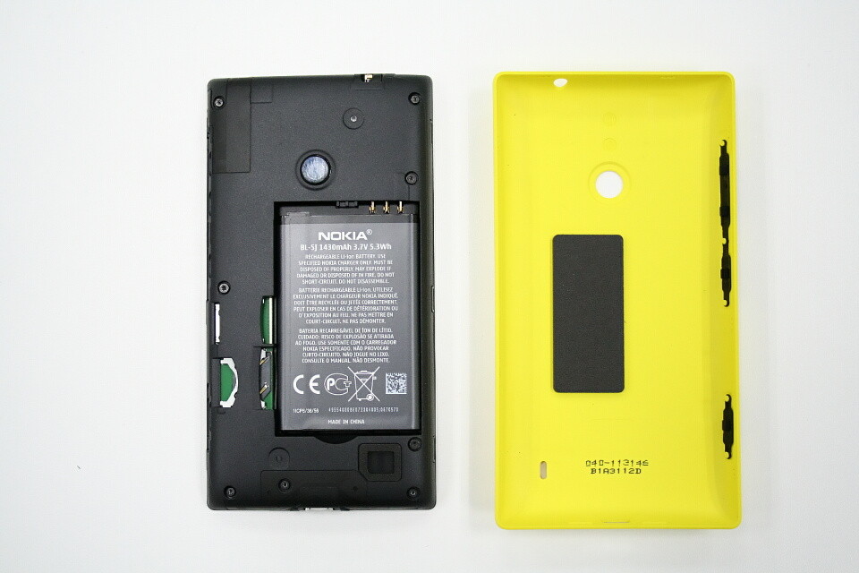 バッテリーは3.7V 5.3Wh 1430mAh、型番はBL-5J、着脱可能だ。バッテリーボックスの横にmicroSIMカードスロット、microSDカードスロットを備える。