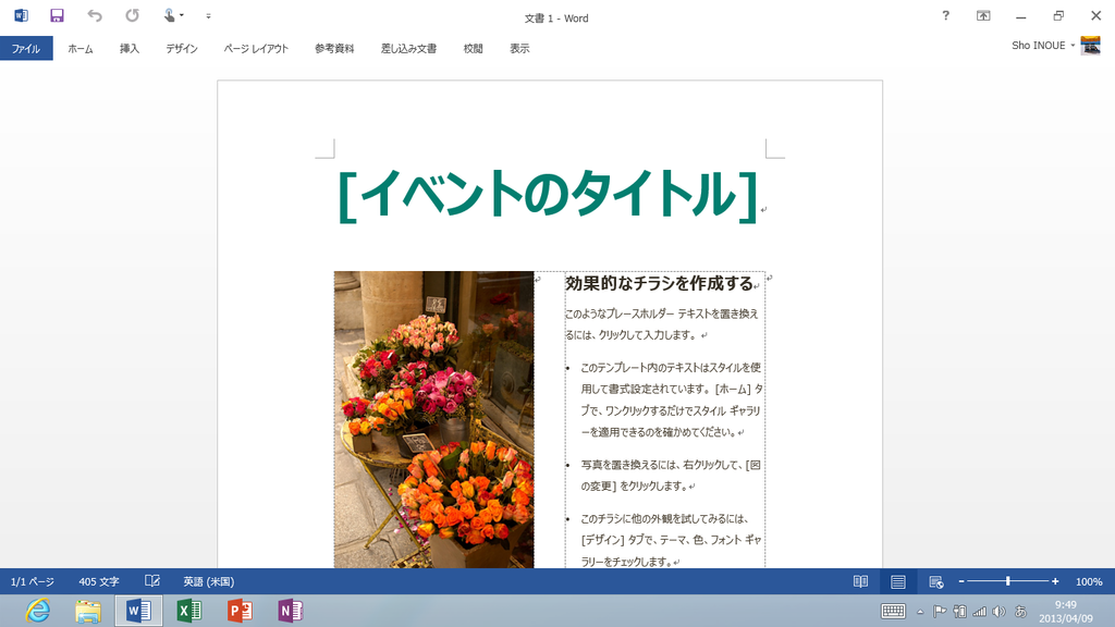 RT版を含め、Office Home and Studentは、本来は商用利用(仕事での利用)ができない(Office 2010世代では、ウィンドウにわざわざ“non-commercial use”って出ていたくらい )のですが、Office Home and Student 2013 RTでは、日本だけライセンス例外事項をわざわざ設けて、商用利用ができるようになっています。仕事でWordで文章を作ったり、Excelで表計算・グラフ作成を行ったり、PowerPointでプレゼン資料を作成したり……、といったことが何の後ろめたさもなくできるのです。