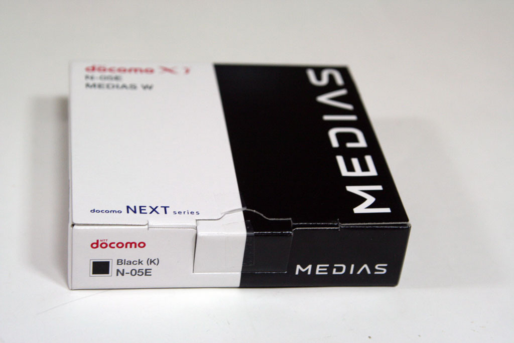 ですが、MEDIAS W N-05Eは、非防水端末ですので、その分パッケージもコンパクトになっていると思われます。