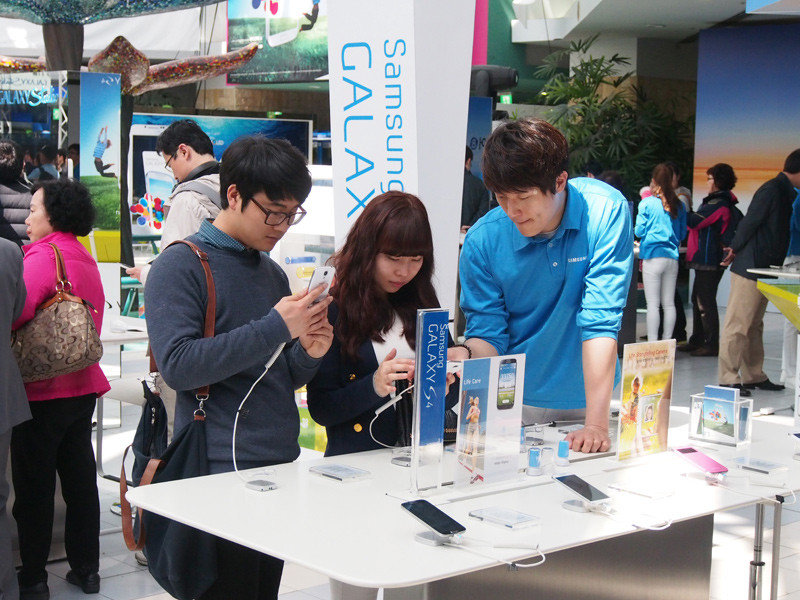 翌26日の午前10時、韓国の全都市でGALAXY S4が一斉に発売開始となった。ソウルでは大型ショッピングモール「COEX」に特設会場が設けられ、GALAXY S4の実機が200台も並べられ一般客でも誰もが自由に製品をトライすることができた。平日金曜日にも関わらず朝から多くの消費者が訪れ、お昼時にはデモ端末を奪い合うように試す光景もあちこちで見られたほどだった。