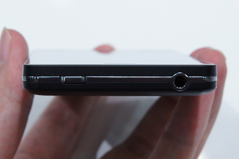 上面。ワンセグアンテナと電源ボタンとイヤホンジャックが並ぶ