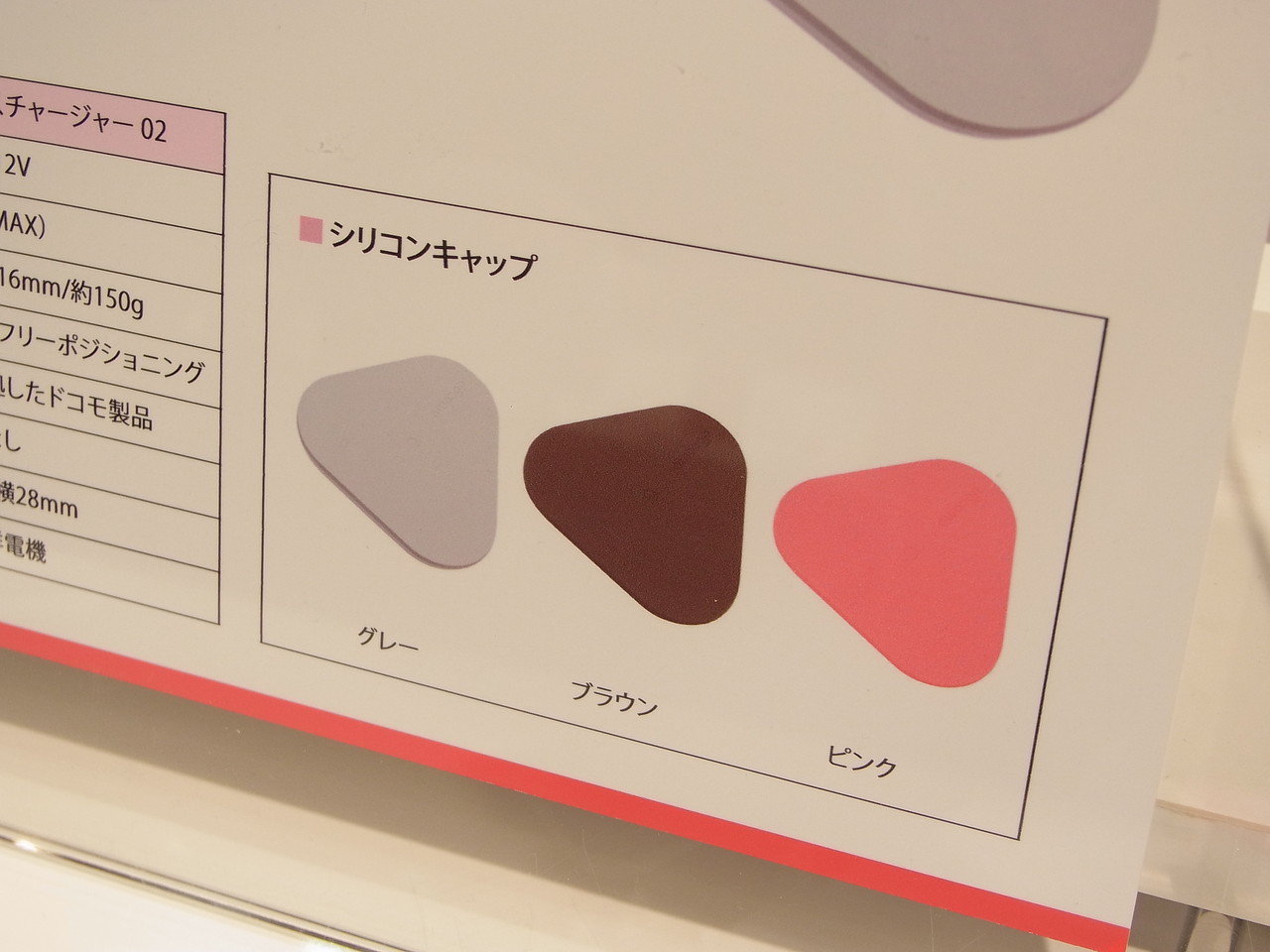 その場合、端末が落ちないようにスペーサーとして利用することもできるキャップなのです。そのため「キャップの高さと充電パッドの高さを合わせた」(同説明員)そうです。