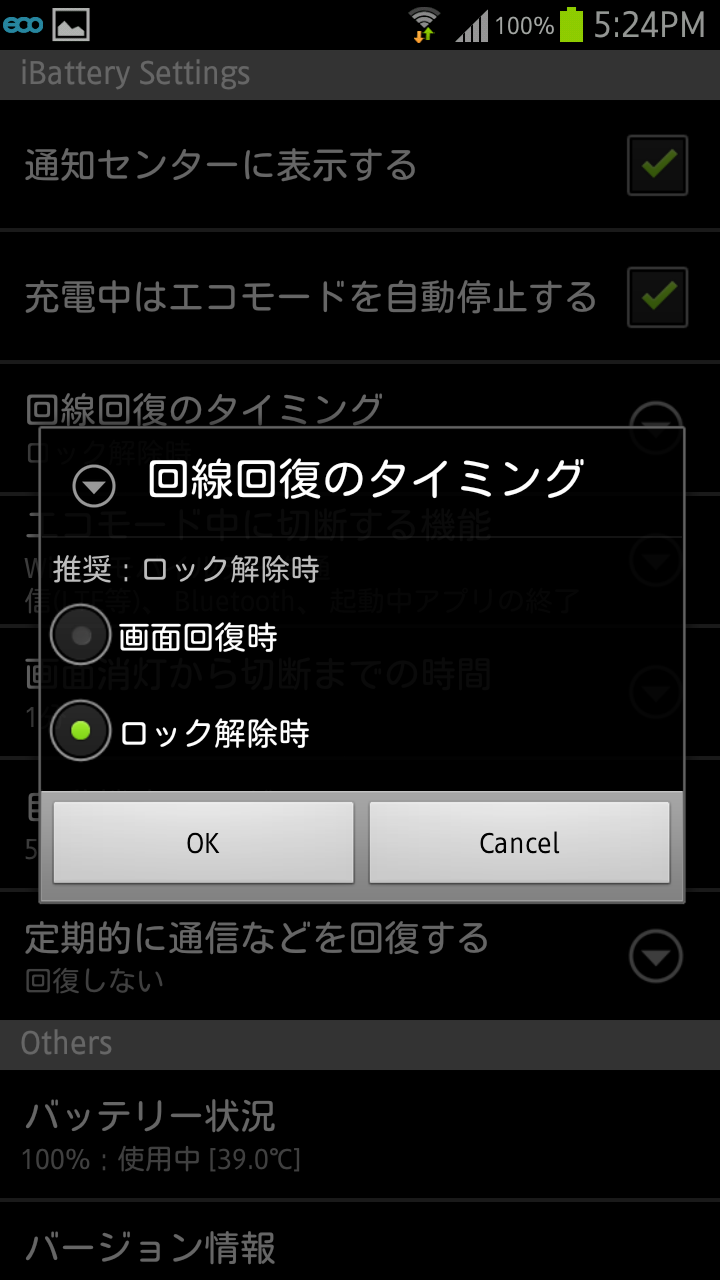 推奨は「回復しない」となっていますが、バッテリー消費をふまえた上で設定してくださいね。