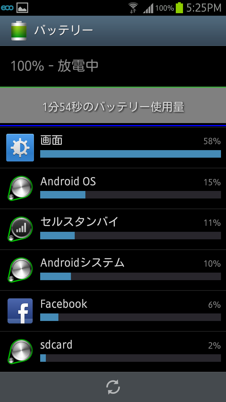 バッテリーの使用量の状態を確認することもできるようになっています。