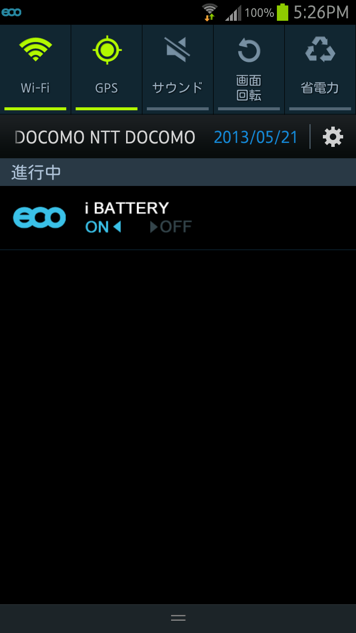 ステータスバーへの通知をONにするとアプリを起動しなくてもエコモードのON/OFFを切り替えることができます。ただし、設定内容を変更する場合はアプリを起動してください。