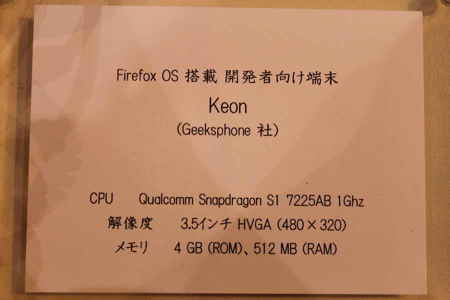 こちらは、前回の記事でも紹介したMozillaが開発者向けにすでに販売しているGeeksphone製Firefox OS搭載スマートフォンです。