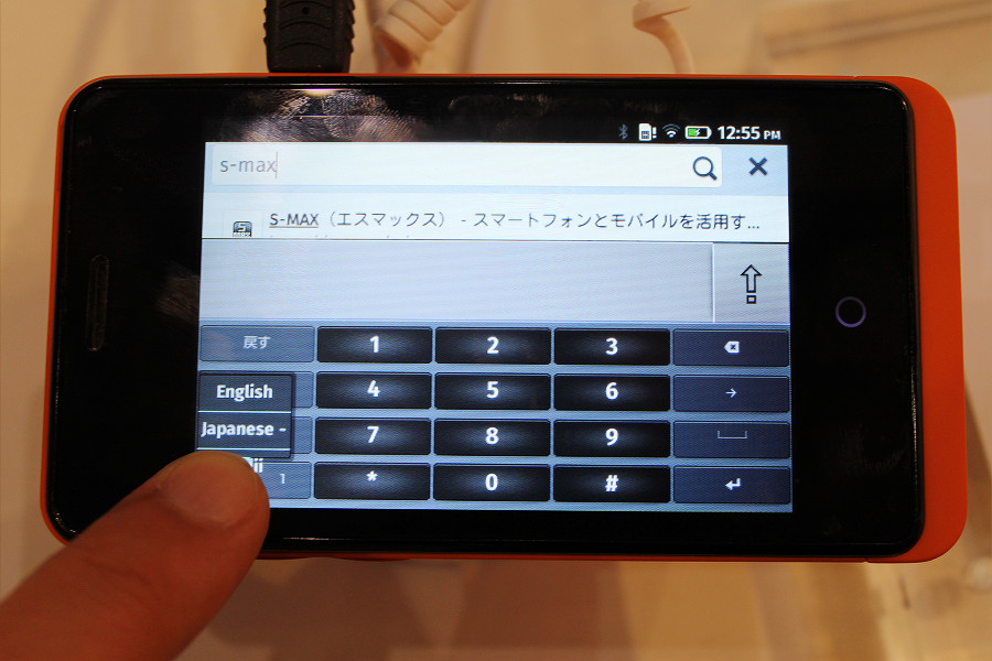 ユーザビリティ的な特徴としては、説明員(技術者の方)の方が言うところの「特にありません、自由にしていただけるのが特徴」とのこと。また、「全すべがWebベースで自由にデザインできるので、理屈の上ではOSがFirefox OSというだけで、完全に見た感じがフューチャーフォンな端末だってできる」ということだそうです。