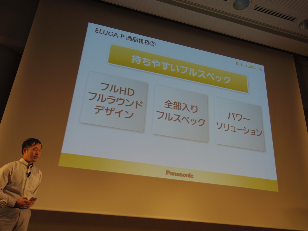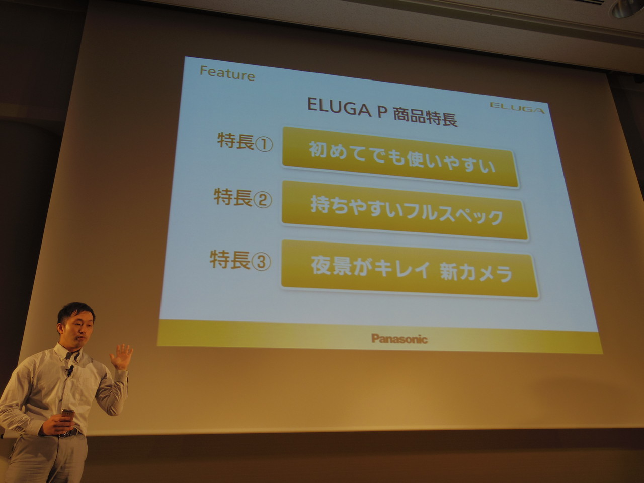 ELUGA Pの具体的な商品説明は、PMC 商品開発グループ 企画担当課長の野中亮吾氏が担当しました。