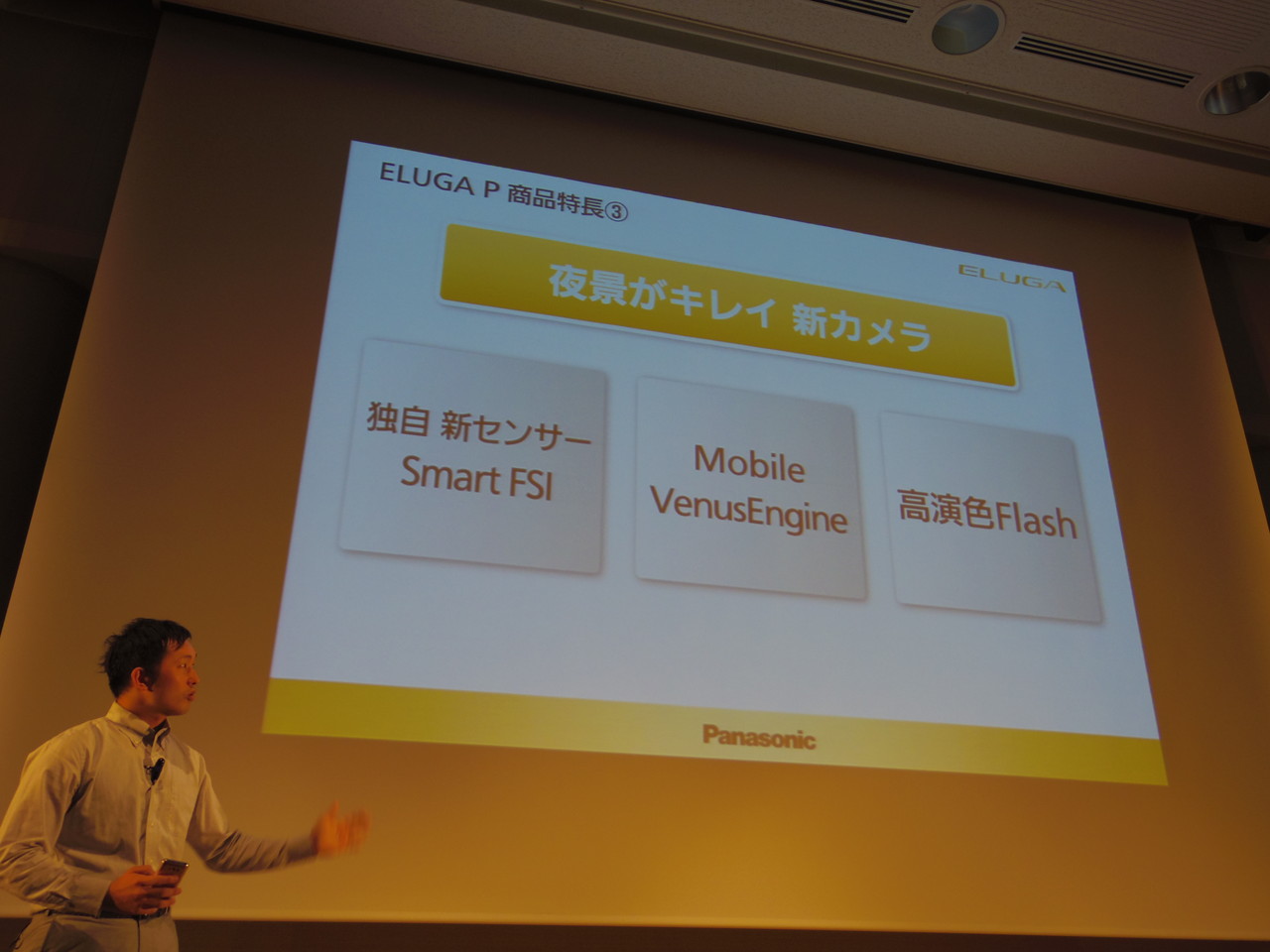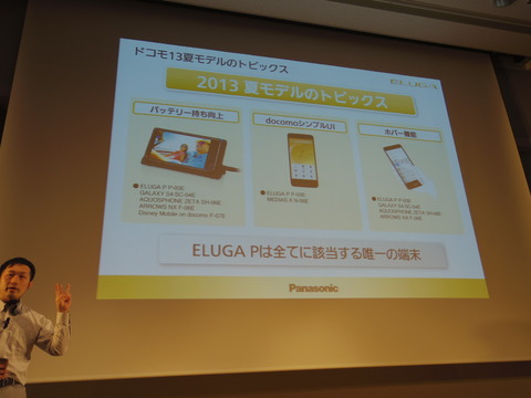 パナソニック モバイルコミュニケーションズ(以下:PMC)は12日、NTTドコモから本日発売されたAndroidスマートフォン「ELUGA P P-03E」の報道関係者向け商品説明会を実施しました。