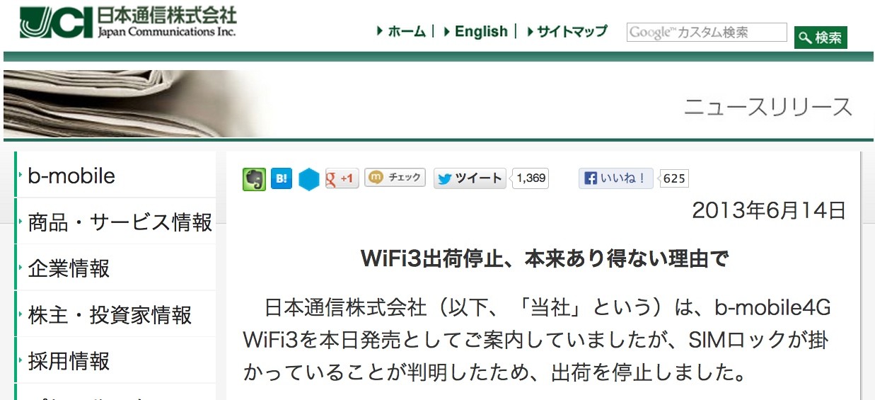 ・WiFi3出荷停止、本来あり得ない理由で|日本通信株式会社