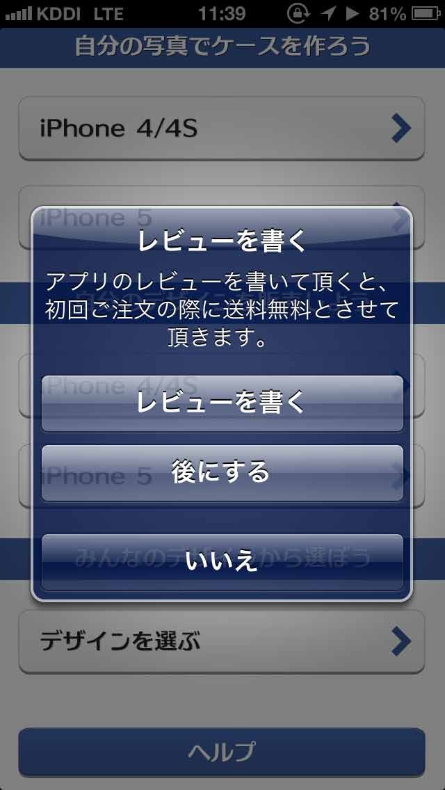 App Storeにレビューを書くと、初回注文の送料が無料になりますので、注文前に書いておくといいでしょう。