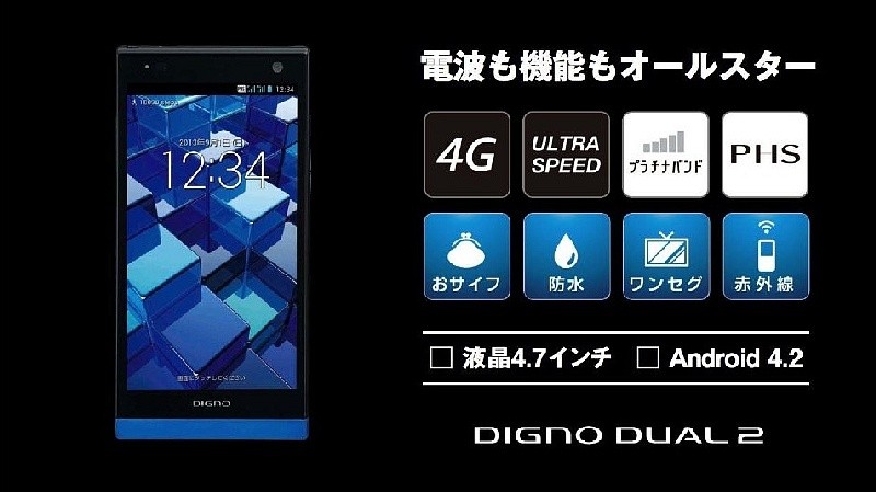 ・ウィルコム、AXGP/W-CDMA/PHSに対応したAndroidスマートフォン「DIGNO DUAL 2 WX10K」を発表!おサイフ(Felica)やスマートソニックレシーバーなどに対応