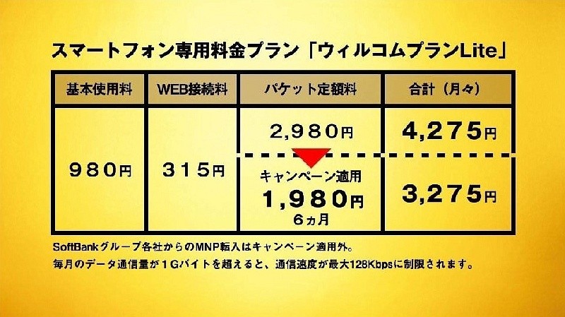 これらのスマートフォンで利用できる新料金プラン「ウィルコムプランLite」(月額基本料980円)も発表し、月1GBまでのデータ利用量まで利用できるオプションと合わせてキャンペーンで月額3,275円、通常料金で月額4,275円で利用できるとしています。