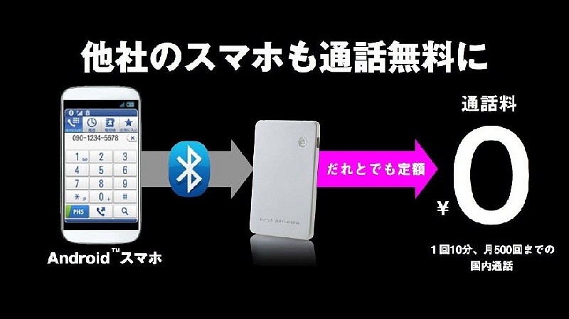 ・ウィルコム、Bluetooth経由でAndroidスマートフォンからPHS通話が利用できるようになるクレジットカードサイズアダプター「だれとでも定額パス WX01TJ」を発表