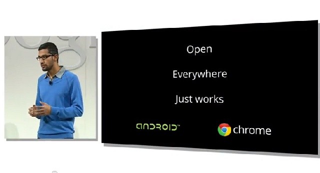 まず、イベントに登壇したのは、「Chrome」に続き、今年に入って「Android」チームも率いるようになったSundar Pichai氏が登壇し、開始されました。同氏は、発表する内容は、ひとつはAndroidデバイス、もうひとつはChromeデバイスであると紹介しました。