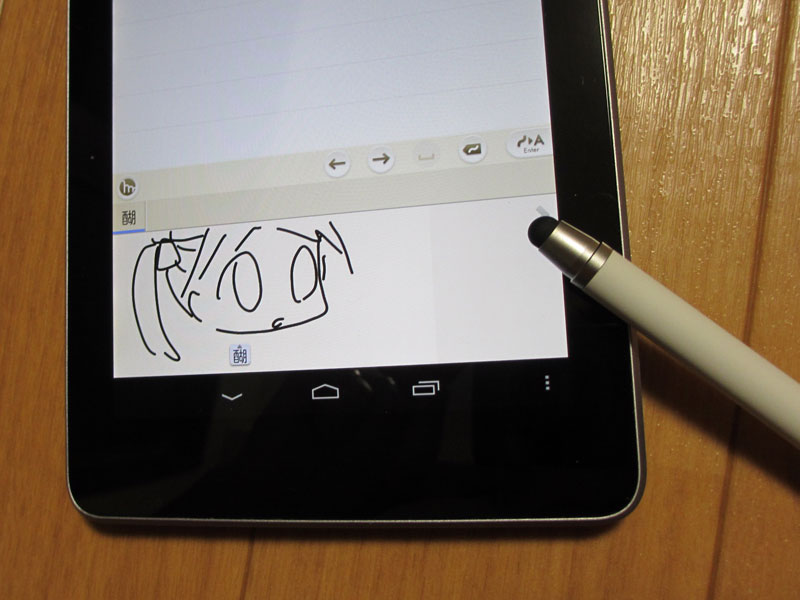 実際にGALAXY NoteやNexus 7などのタッチパネル対応スマートフォン・タブレットで試してみましたが、BAMBOO stylus soloおよびBAMBOO stylus duoともにスタイラスとしては使いやすいです。また、文字だけでなく、簡単な図や絵もある程度は描けるように思います。