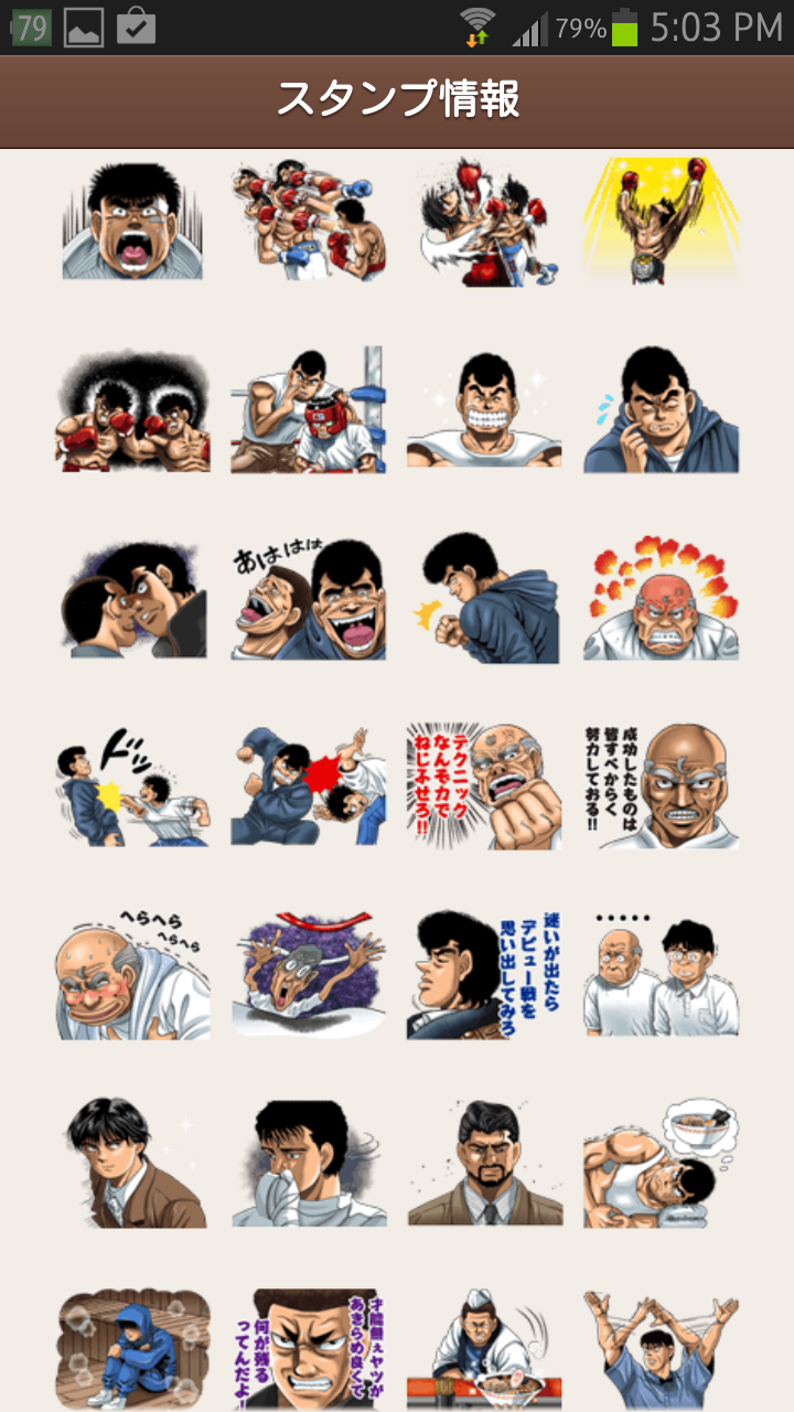 ボクシング漫画のはじめの一歩がLINEスタンプに登場です。主人公の一歩たちの名シーンもあり、鴨川会長の名言もあるファンにはたまらないスタンプになっています。