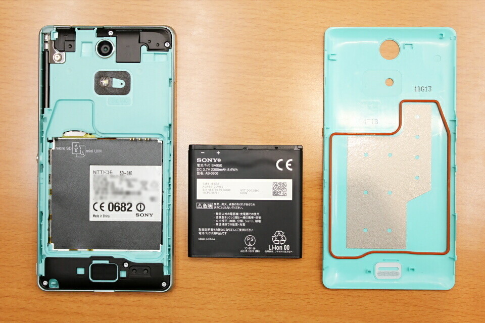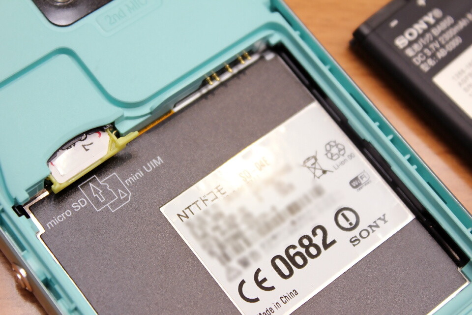 microSDカードスロットとmini UIMカードスロットは電池パックを外したところに搭載