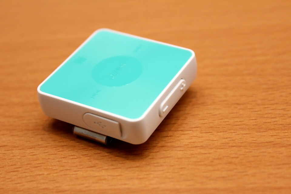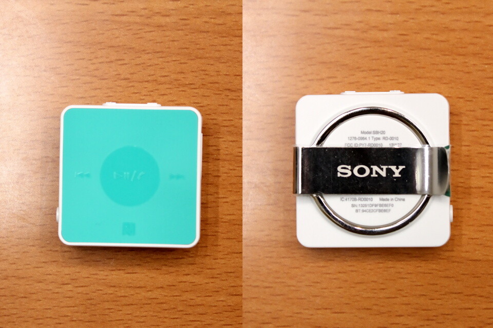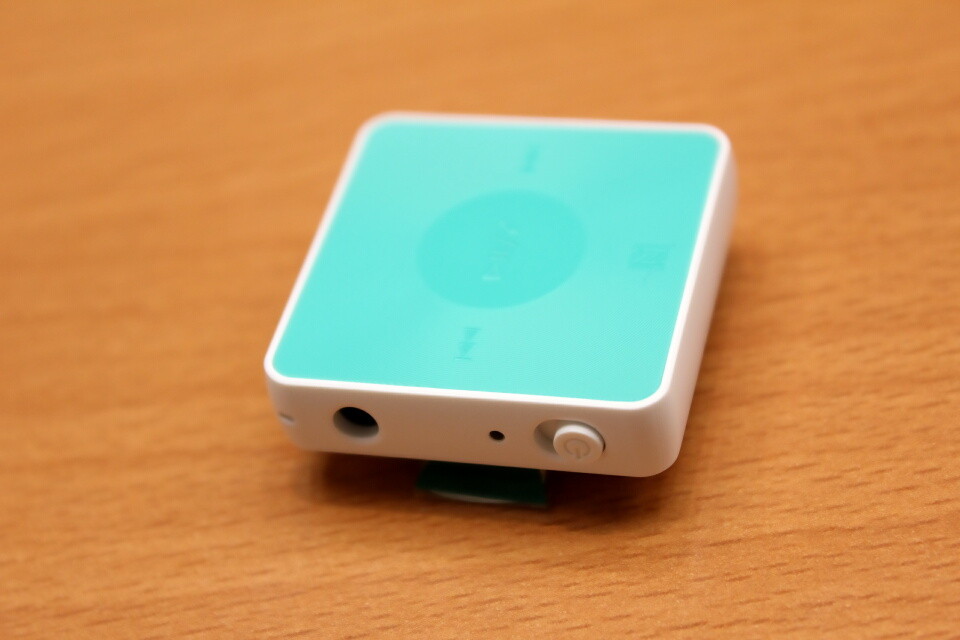 背面はクリップ式となっており、ポケットやカバンなどに挟んで利用できる。充電式のリチウムイオン電池が搭載されており、microUSB経由で充電が可能。充電中は電源ボタンの横にあるLEDランプが点灯する。
