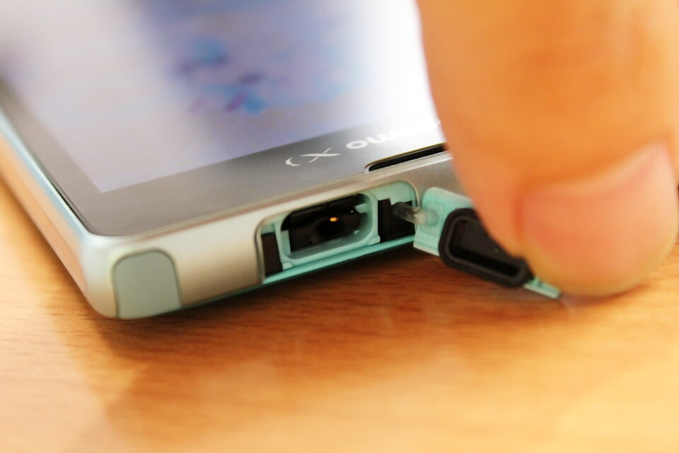 IPX5、8/IP5X等級の防水・防塵性能に対応しているため、側面の端子部分および、リアカバーの裏面に液体などの侵入を防ぐパッキンが取り付けられている。他の防水・防塵機種と同様、本体電源を入れて立ち上げる際のブート画面でしっかりとキャップや蓋を締めるようアナウンスの画面が表示される。