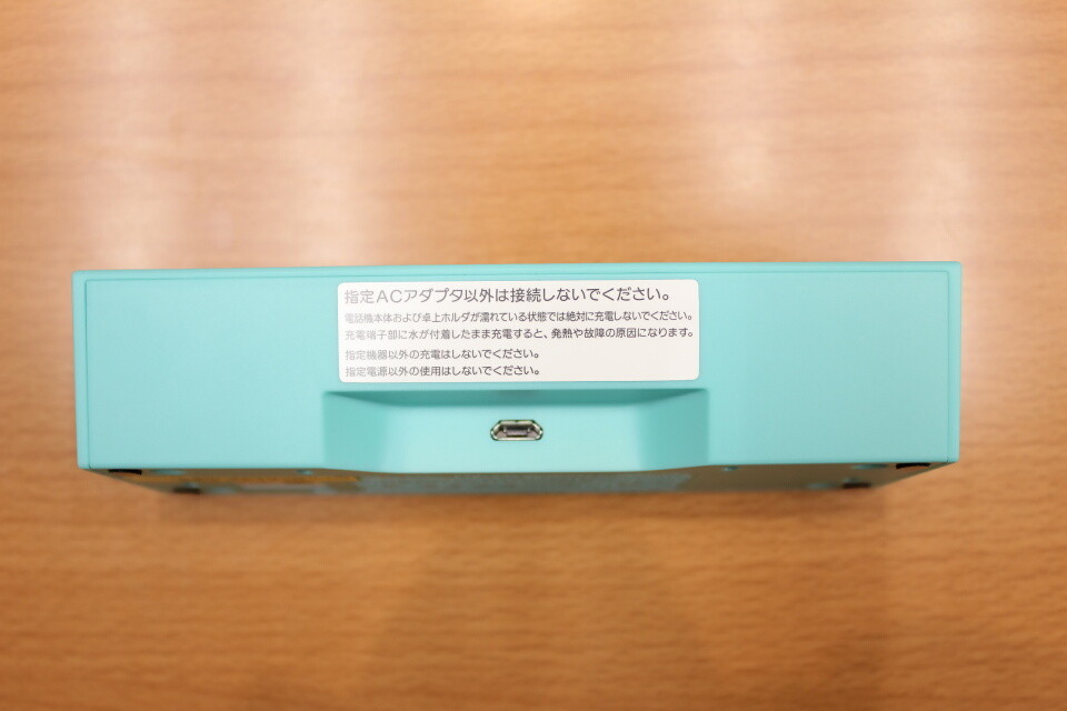 専用の卓上ホルダーも初音ミクをイメージしたカラーで本体をセットすると本体カラーと相まってかなり可愛い。卓上ホルダーとしても単純に珍しいカラーなので淡いブルーグリーンが好きな人には結構グッとくるアイテムになるだろう。