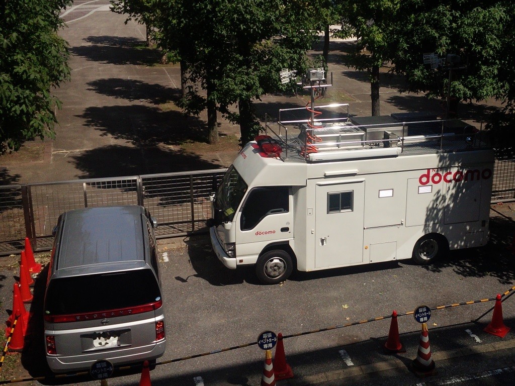 NTTドコモは、今回、Xi(LTE)対応の移動基地局車を送り込んでいます。不測の事態に備えて係員が常駐しているしているようです。