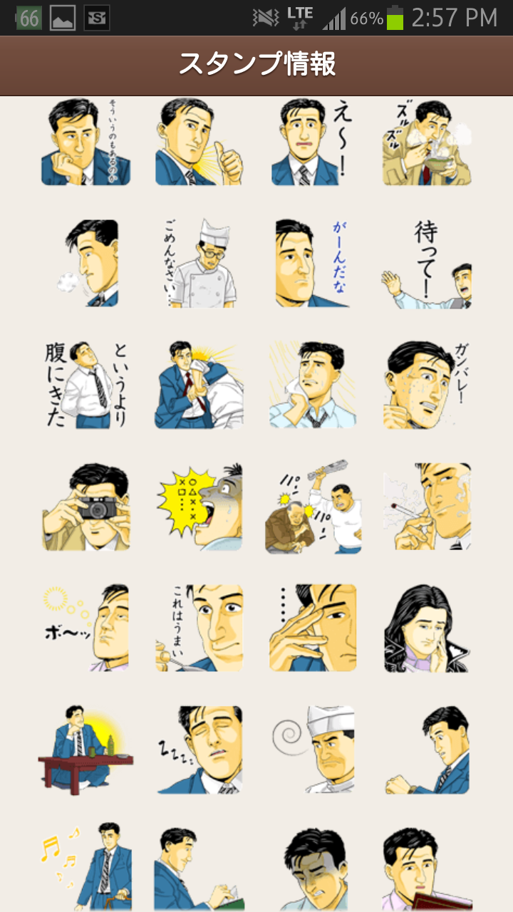 テレビドラマ化もされたグルメマンガ「孤独のグルメ」がLINEスタンプに登場です。主人公、井之頭五郎の淡々としたハードボイルドなスタンプを使ってグルメリポートもできちゃいます。