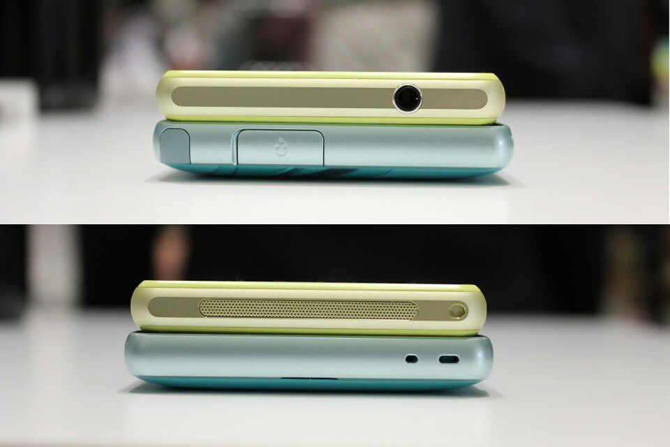 本体正面。左がSO-02F、右がミクスマホ