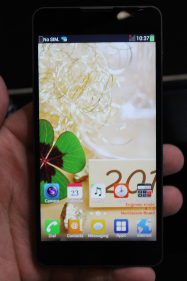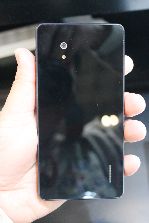 本体正面には5インチフルHD(1080×1920ドット)IPS液晶ディスプレイと約130万画素インカメラ、ホームキーやバックキーがタッチキーで配置されています。背面にはフラッシュライト付、約1300万画素のアウトカメラ、NFC、外部スピーカーがあります。また、非接触充電Qiに対応しており充電台に乗せるときの充電用コイルもこちらにあります。