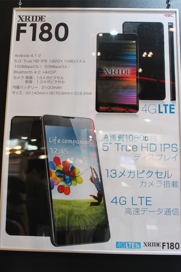 今回の記事では、今春に行われた「2013 Japan IT Week 春」にも出展していた「R.W.C」のブースにて、オリジナルのLTE対応SIMフリースマートフォン「X-RIDE F180」が展示されていましたので、紹介いたします。