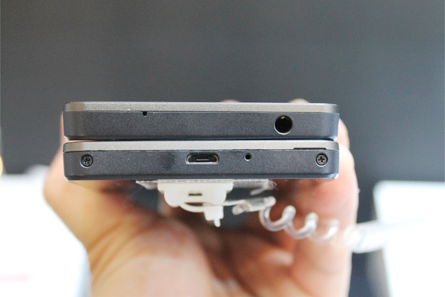 天面側には3.5mmイヤフォンジャックと動画撮影用のマイクが、底面側には通話用マイクとmicroSIMカードスロットがあります。