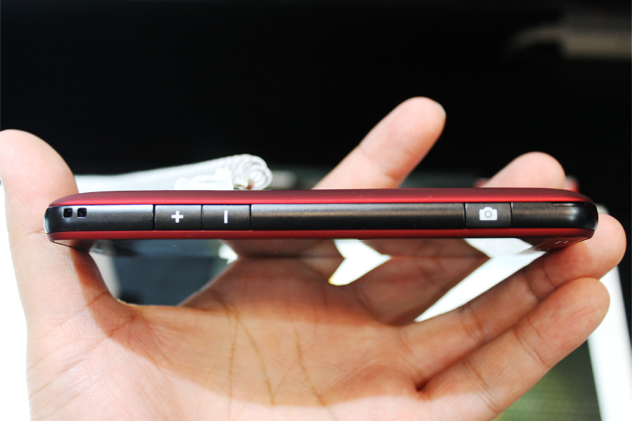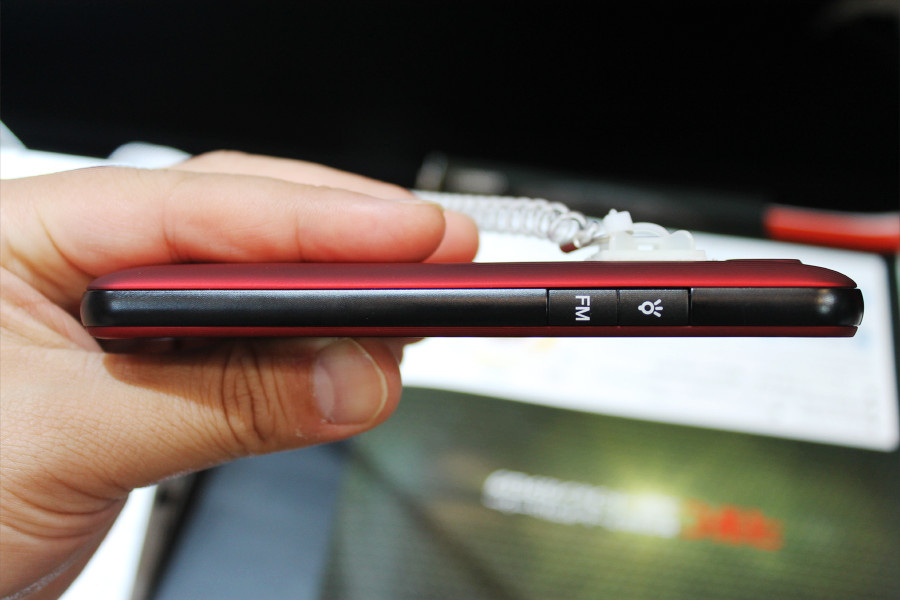 右側面には音量キーとカメラアプリ起動キーがあります。±やカメラのマークが印刷されており、一目でわかるようになっています。カメラキーはシャッターを切るのにも使用できます。左側面にはFMラジオアプリの起動キーと前述の懐中電灯機能のスイッチキーがあります。