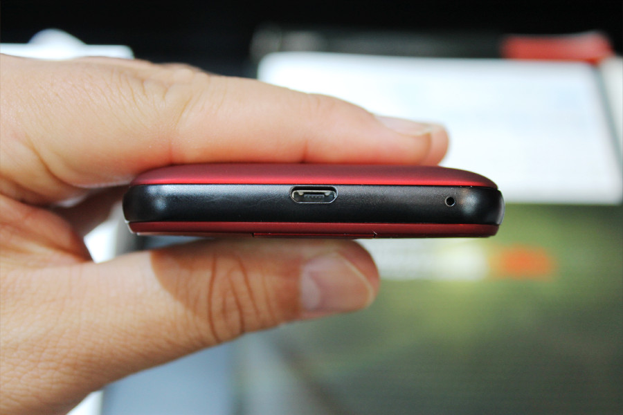 本体天面には電源キー、3.5mmイヤフォンジャック、LED懐中電灯!があります。底面側にはmicroUSB端子と通話用マイクがあります。