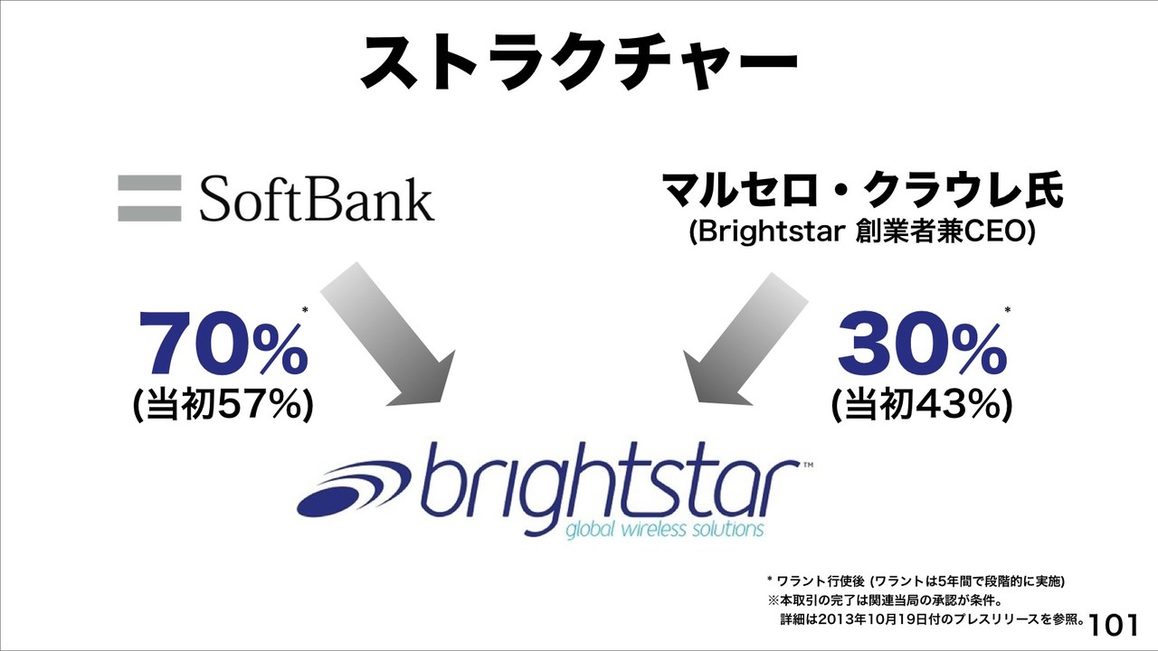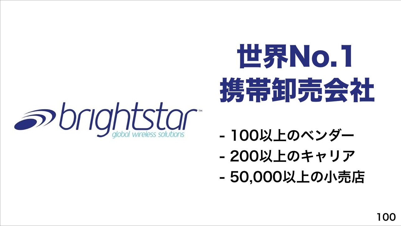さらに、2013年10月に世界No.1の携帯卸売会社「Brightstar」への出資に合意したことを発表したことも紹介していました。
