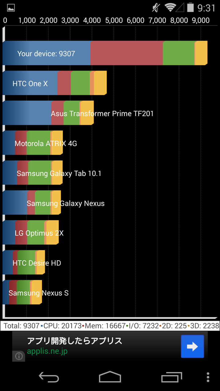 | Nexus 5 | 1回目:9059 | 平均 9209 | 1回目:26646 | 平均 25109 |