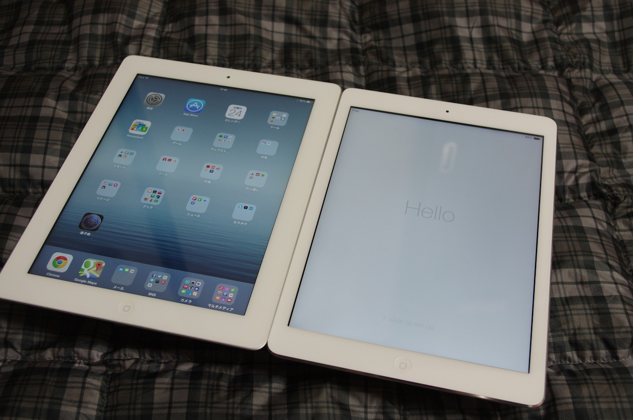 これまでのiPad(写真=左)とiPad Air(写真=右)を並べたところ。