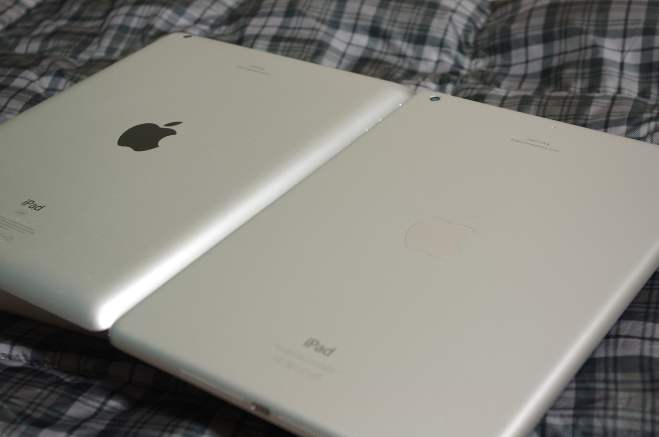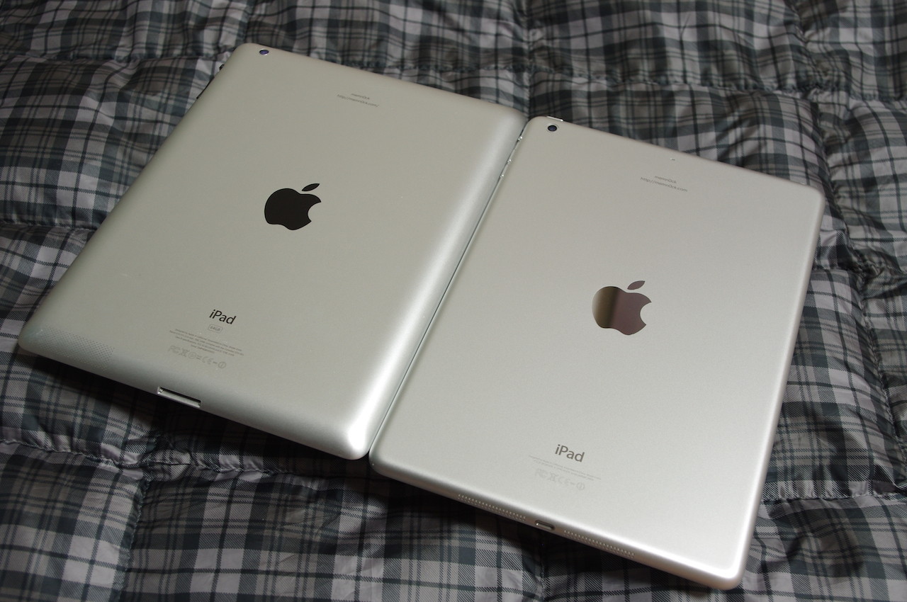 これまでのiPad(写真=左)とiPad Air(写真=右)を背面にして並べたところ。