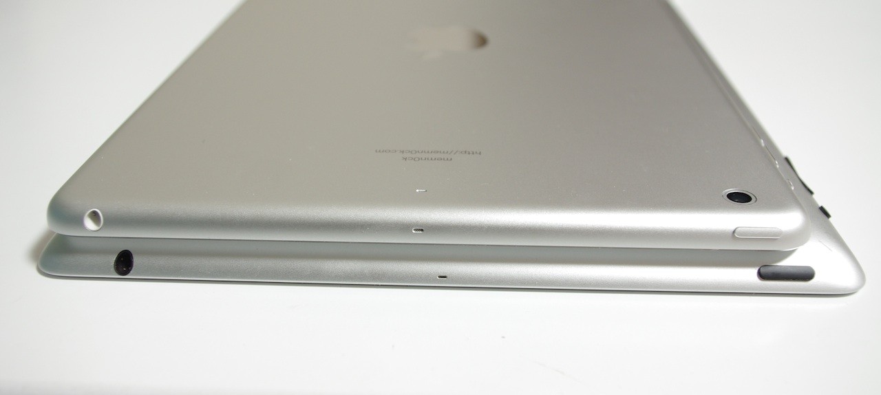 これまでのiPad(写真=下)とiPad Air(写真=上)の下側面。