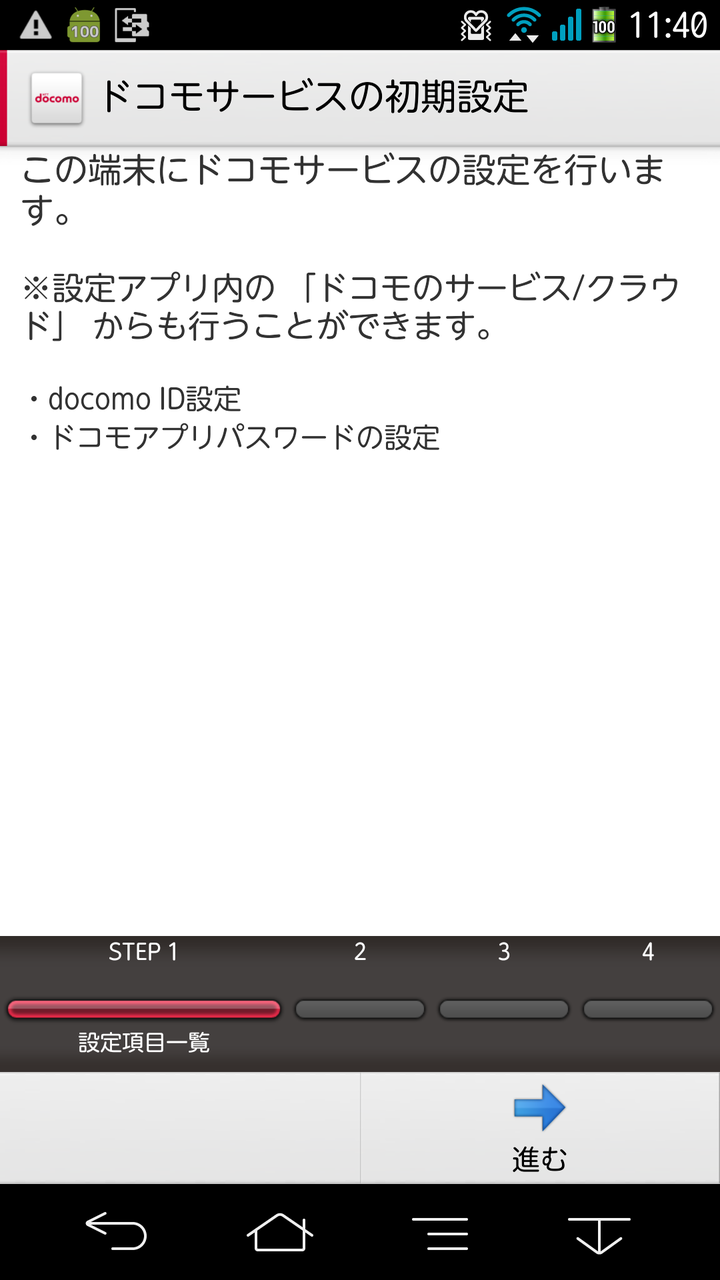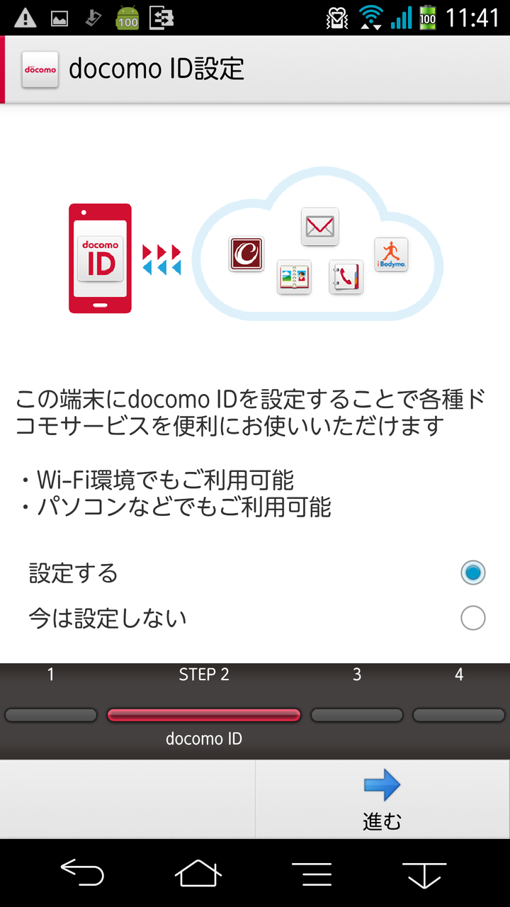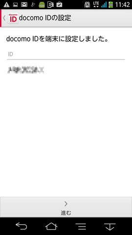 次に進むと、本体内にdocomo IDが保存され、後述する対応アプリで共通して使えるようになります。