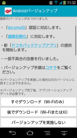 下準備として、まずは機能バージョンアップをしないといけません。機能バージョンアップについては、既報をご覧くださると良いのですが、3G/LTE環境下ではパケット通信料金が発生するので、できることなら通信速度も十分な無線LAN(Wi-Fi)によるインターネットアクセスができる場所でバッテリーを十分に充電してから実行することをお勧めする次第です。